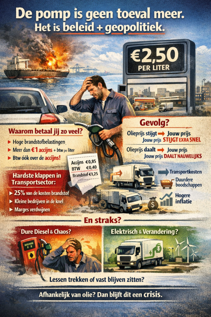 – **Nu:** recordhoge brandstofprijzen (rond €2,50), hogere werkdruk, strakkere planningen en toenemende kostenstress bij werkgevers.